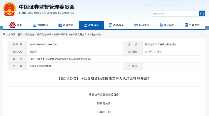 证监会1月1日消息,证监会、财政部联合发布《证券期货行政执法当事人承诺金管理办法》(简称《承诺金办法》。