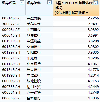 从统计数据来看,扣非市盈率低于7倍的有91家,其中低于5倍的有36家,荣盛发展、英科医疗等公司的扣非市盈率甚至在3倍以下。