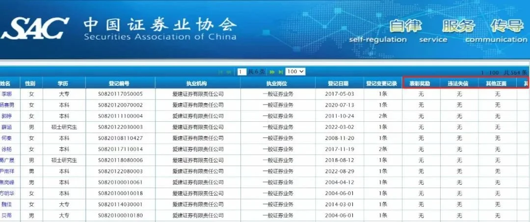 “这个执业声誉,差不多是将从业人员职业经历过程中的重大奖惩、正负面信息都收录进去了,是个人的从业档案,对个人的执业会起到一定的约束作用。从业人员要珍惜自己的执业声誉”,某头部券商人士向记者表示。