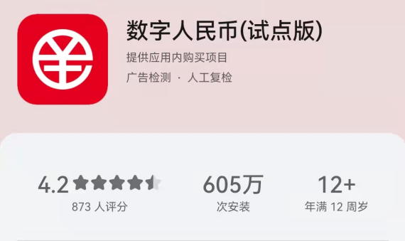 华为应用市场数据显示,截至发稿时,数字人民币App下载量已达605万次。