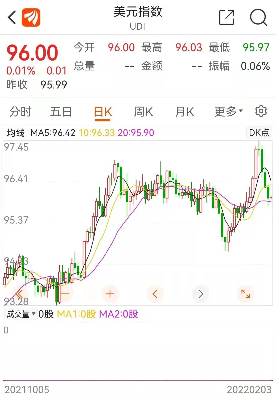 那么,在短短几天之内,市场情绪缘何突然反转?且来看一个指标:美元指数。最近4个交易日,美元指数连续从高位滑落。该指数最高达97.45,现报95.88。