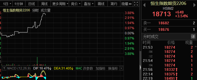 恒生指数期货更是一度暴涨超4%。